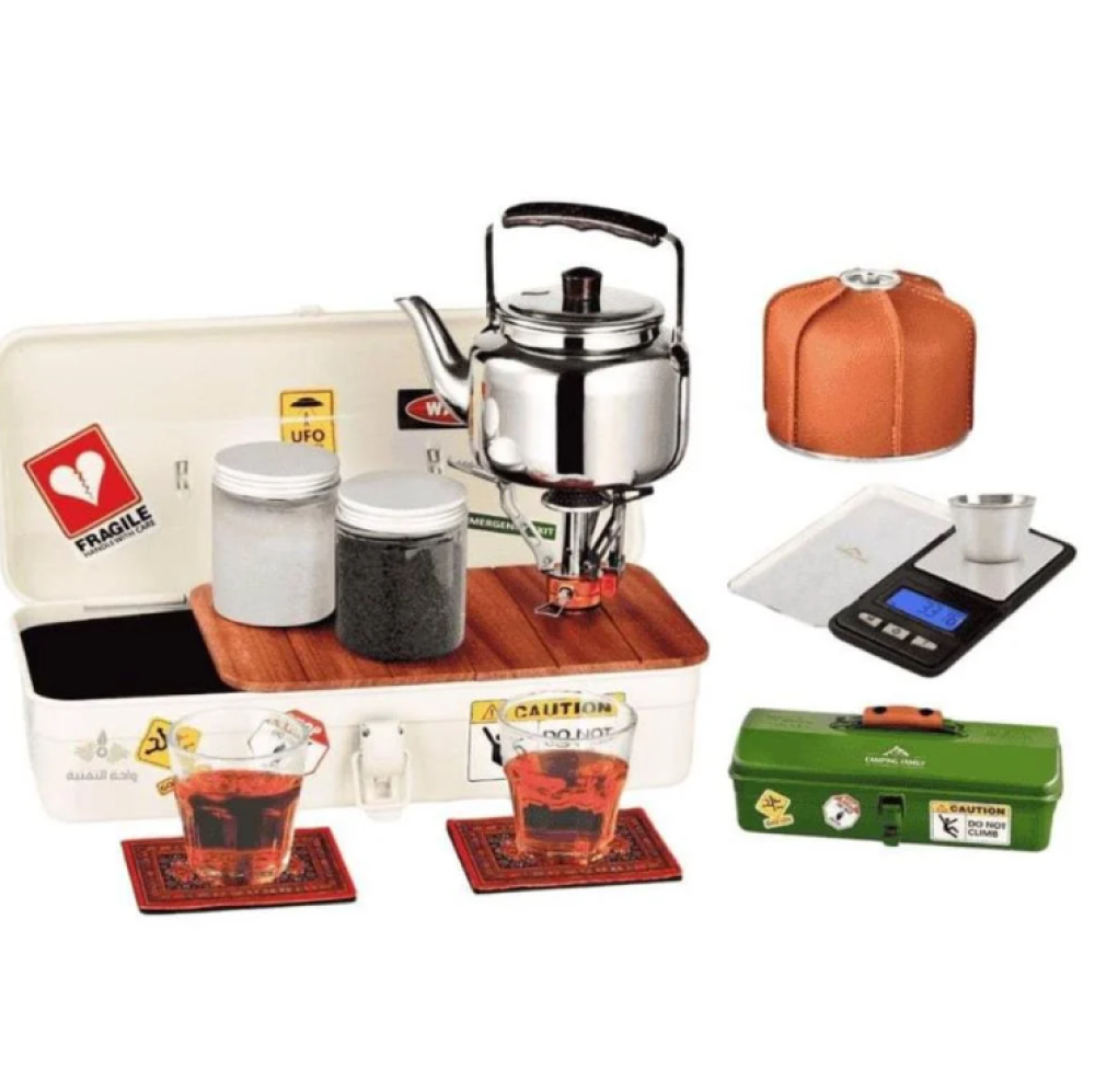 صندوق عملي وأنيق مخصص لحمل وتخزين أدوات تحضير الشاي أثناء الرحلات والتخييم. يساعدك على تنظيم أدواتك بشكل مرتب وحمايتها من التلف، مع سهولة الحمل والنقل.